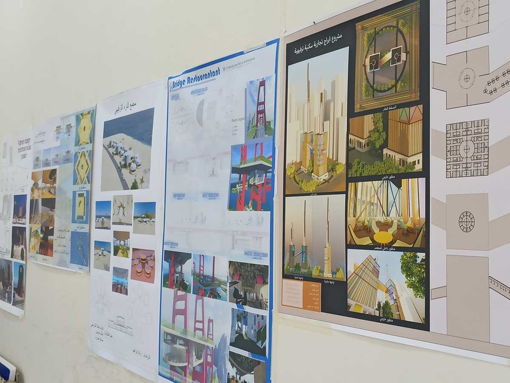 مقتطفات من مشاريع طلبة الهندسة المعمارية ‐ المستوى الثالث، وفقًا لمقرر الإبداع المعماري الفني.